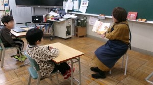 読み方や見せ方に工夫があり、どの学級の子どもたちも真剣に耳を傾けていました。