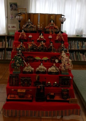 図書室に立派なひな人形がかざられています。