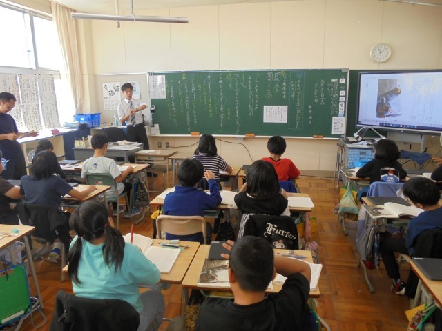 また午前中は、市内の初任の先生方が集まり、授業研究を行いました。