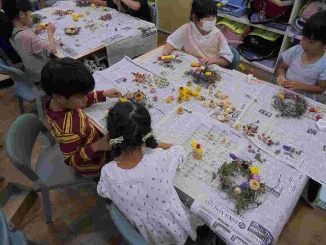 昨日は、1年生がリースづくりに挑戦しました。(3・4枚目)