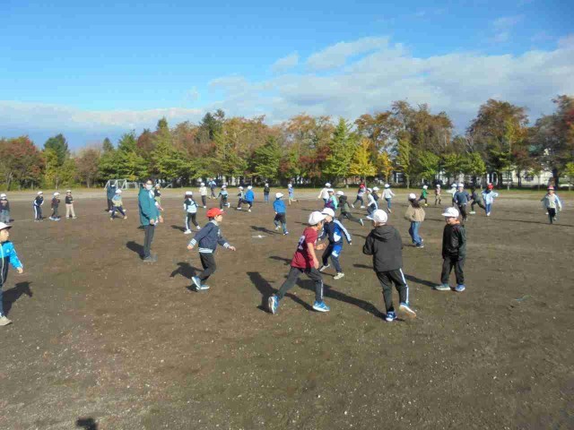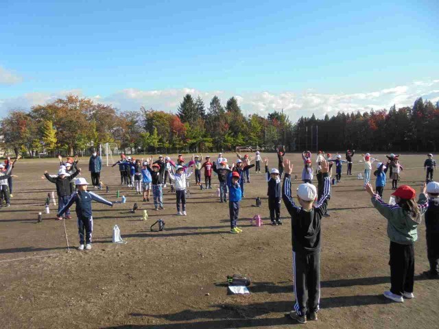 秋の朝日をいっぱいに浴び、みんなで楽しく体を動かしました!