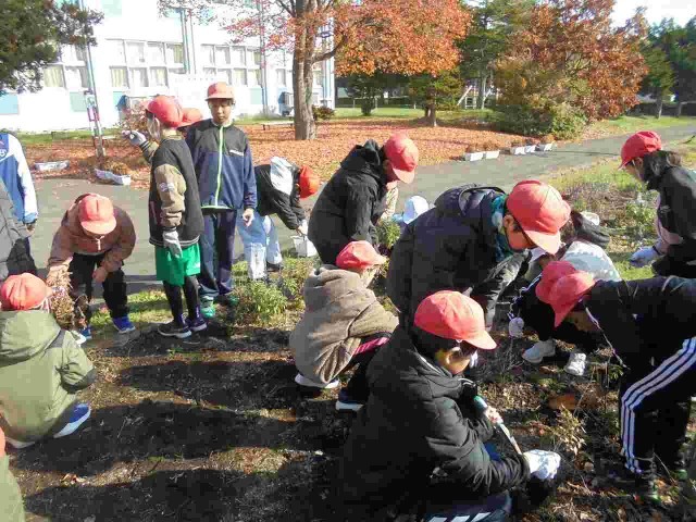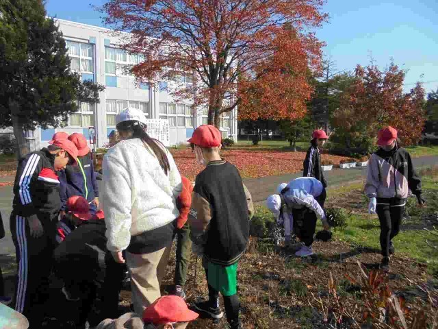 今日は5年生が学級花壇の後片づけを行いました。(1・2枚目)