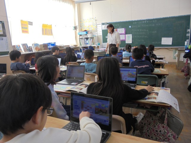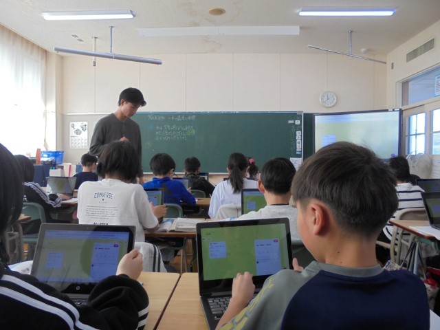 他の学年でも、タブレットを使って考えを交流している様子や、