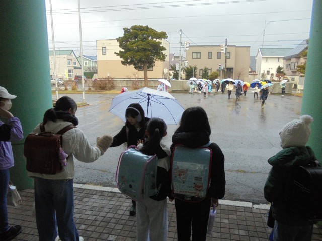 今日から師走です。児童会書記局の皆さんの挨拶運動「あいタッチ運動」から、