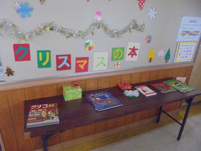 学校図書館前には「クリスマスの本」コーナーができ、