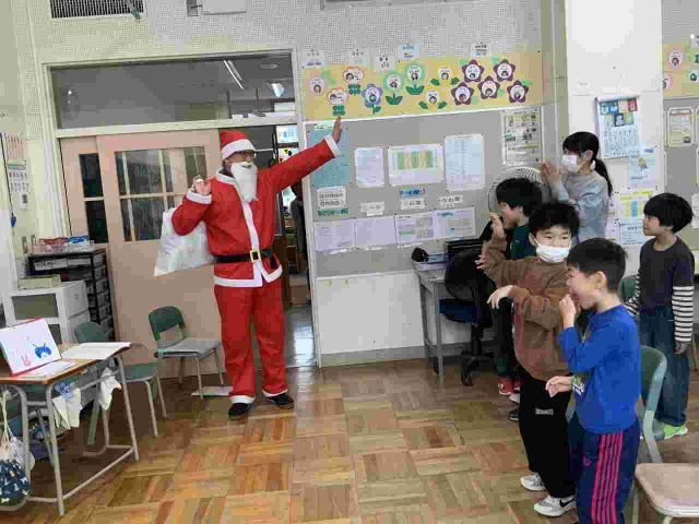 何と、サンタさんが登場!あさひ学級の子どもたちに