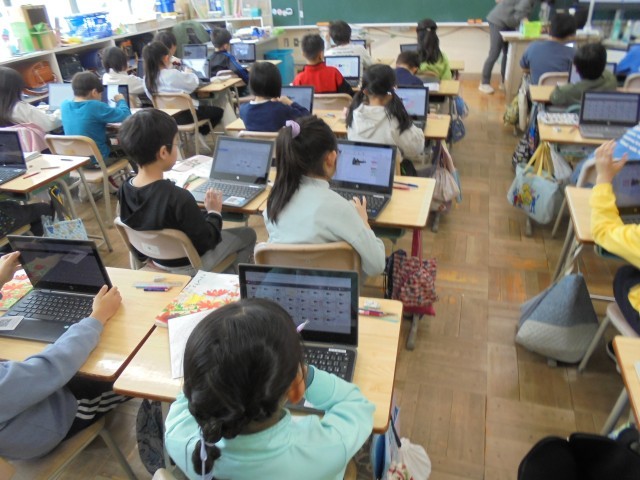 子どもたちはタイピング練習を重ね、まだ2年生なのに、