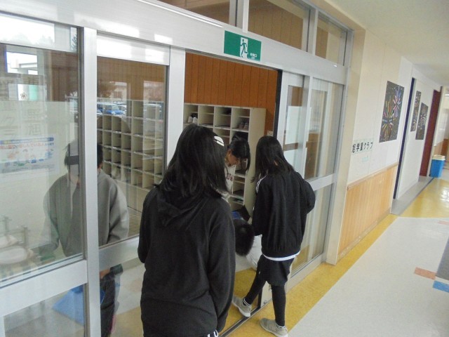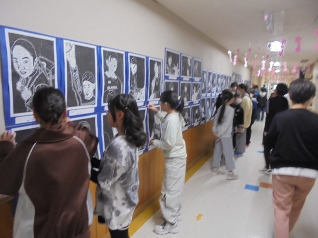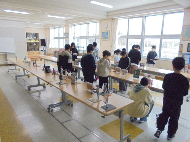 卒業作品展の掲示物や立体作品を6年生の教室に運んだり、