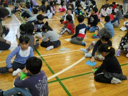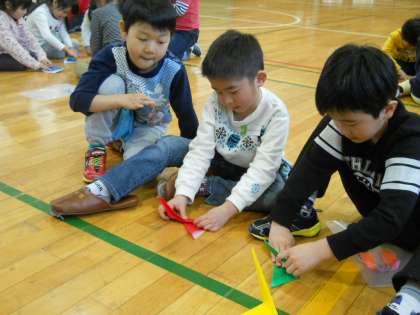 1年生との交流の様子です。一緒に折り紙を折りました。