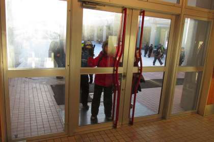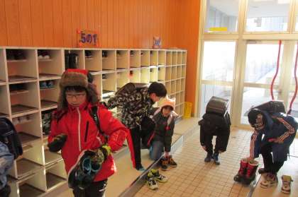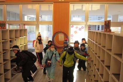 写真は元気に登校して、われ先に教室に行きたい素敵な子ども達の様子です。