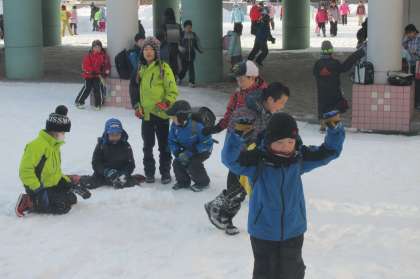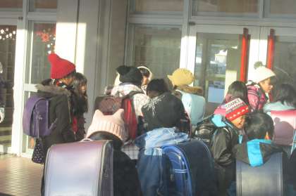 2/15 元気に登校して、玄関が開くのを待っているすてきな子ども達の様子です。