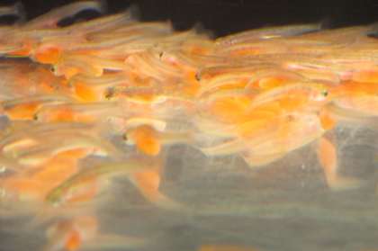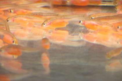 2/16 今日のさけの様子です。ちょっとアップの写真がとれました。体の模様がくっきりしてきました。