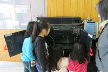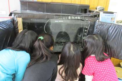 3/13 昼休みの様子(玄関さけ水槽前)