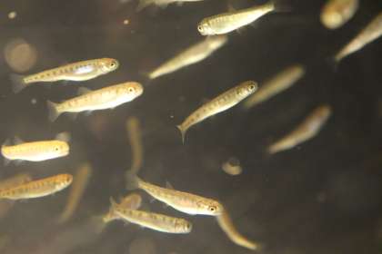 3/14 今日のさけの様子です。水槽全体を優雅に泳いでいます。