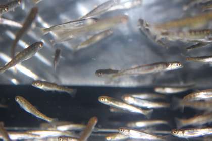 3/15 今日のさけの様子です。栄養袋がすっかり消えた後は、日に日に体長が伸びている感じです。あと1ヶ月ほどで放流です。