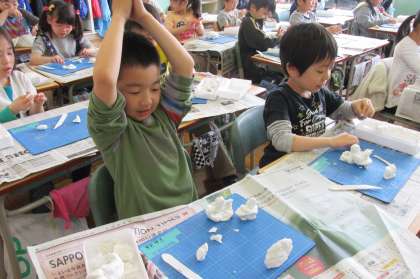 5/11 2年生が図工科で『にぎってねんど』に取り組んでいました。