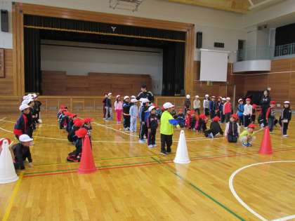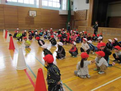 5/16 1年生が体育で運動会の徒競走などの並び方を練習していました。色々な並び方を覚えるのは大変です。