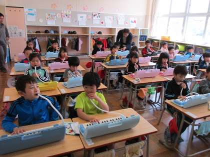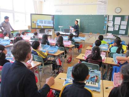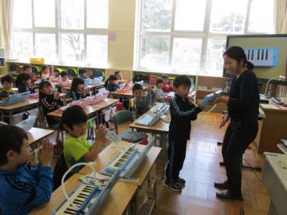 本日、ヤマハの音楽講師さんに来校いただき、1年生に鍵盤ハーモニカ指導を行っていただきました。初めての鍵盤ハーモニカの学習でしたがとても楽しく学ぶことができました。1年1組の学習の様子です。