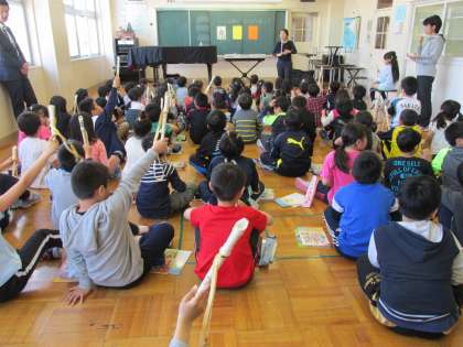 3年生もヤマハの音楽講師さんを迎えて、ほぼ初めてのリコーダー学習を行いました。リコーダーの扱い方や吹き方、手入れの方法など、たくさんのことを学びました。