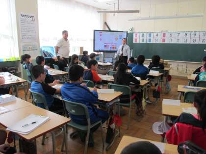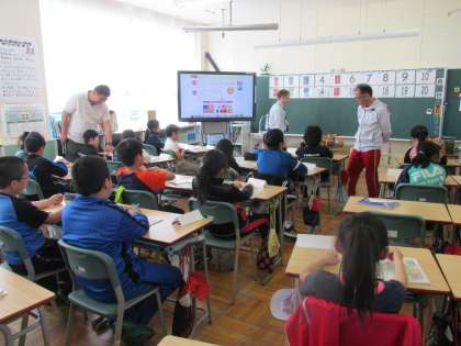 5/18 今日はALTルーカス先生とPIT松本先生が来校して、5・6年生4学級の外国語学習の支援をしてくださいました。3名によるT・T学習は、子どもにも教師にも心強いですね。