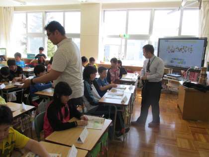 電子黒板とデジタル教科書と黒板を有効に使って学習を進めています。