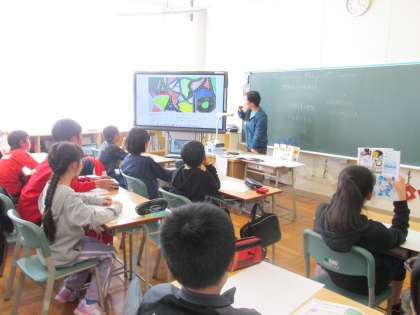 2年生でも電子黒板に書き込みながら説明することができています。また、図工科でも、画像資料がとても役立ちます。