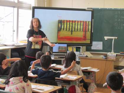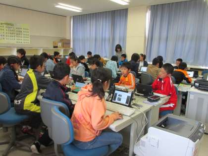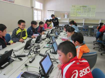 タブレットを使った学習や書画カメラを活用した授業の様子です。