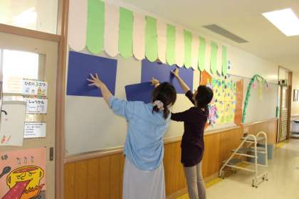 すてきな季節の掲示物ができました。図書ボランティアの皆さん、いつもありがとうございます。