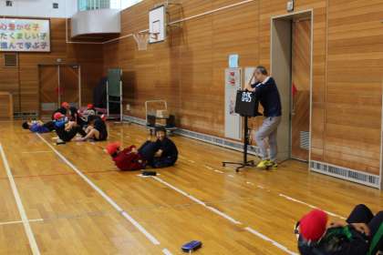 6/19 先週、今週と各学年ともに体力テストに取り組んでいます。今日は、6年生が上体起こしや反復横とびを行っていました。