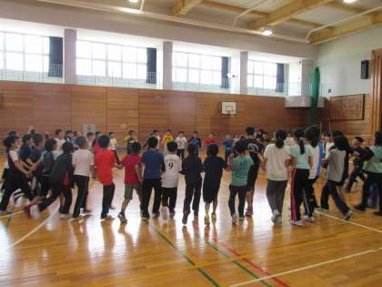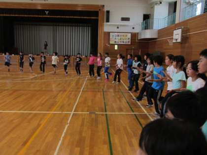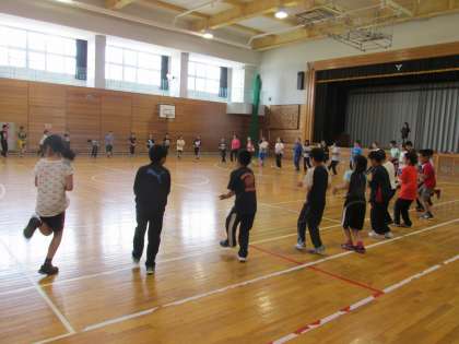 6/23 5年生が体育の学習でマイムマイムを元気に踊っていました。その後、グラウンドで体力テストのソフトボール投げを行っていました。