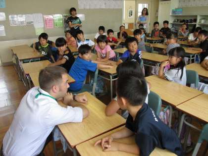 ALTのルーカス先生が来校し3年生の英語学習を支援してくださいました。