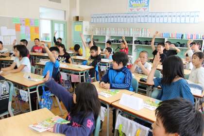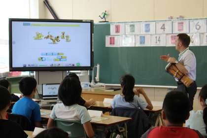 ALTルーカス先生が5年生の外国語活動を支援してくださいました。今日は数の学習をしました。また、ルーカス先生はデジタル教科書も上手に活用されています。