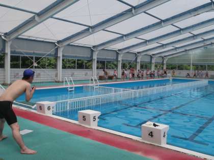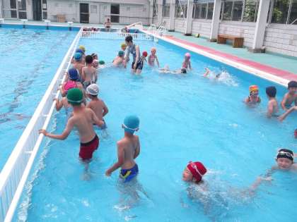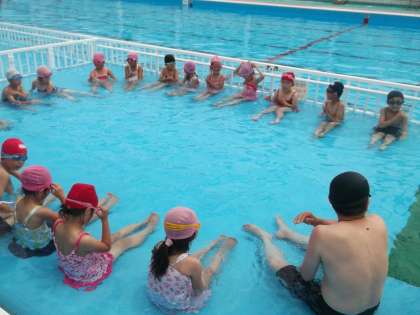 2度目の1年生の水泳学習もあたたかいなか、行うことができました。水温30度、室温39度でした。