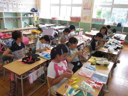 バドミントンクラブ、手芸クラブの様子です。手芸クラブはマスコット作りをしました。