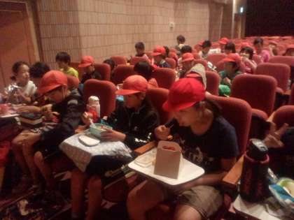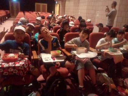 8/24 4年生社会見学速報 開拓の村の講堂で昼食、お弁当タイムです。
