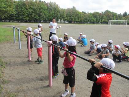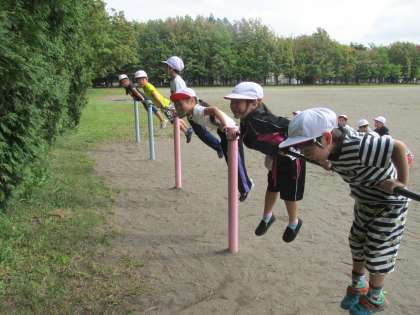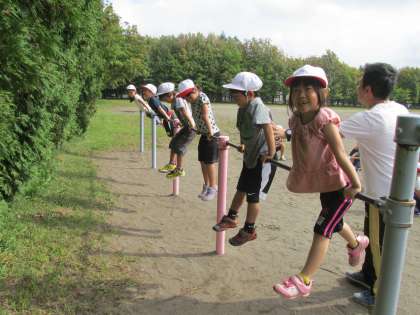 一番低い鉄棒でも1年生にはちょっと高いですね。