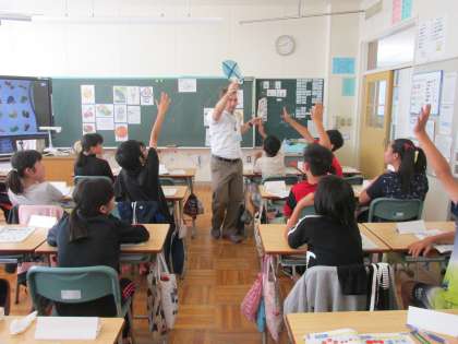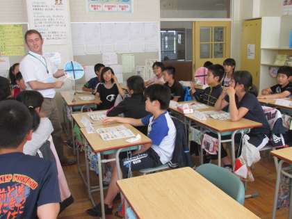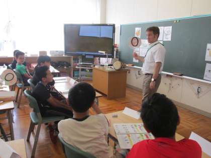 夏休み明け初になりますが、木曜日なので、ALTのルーカス先生が来校し、5・6年生4学級の外国語活動を支援してくださいました。