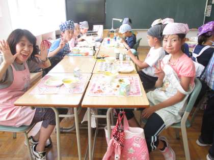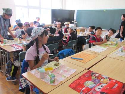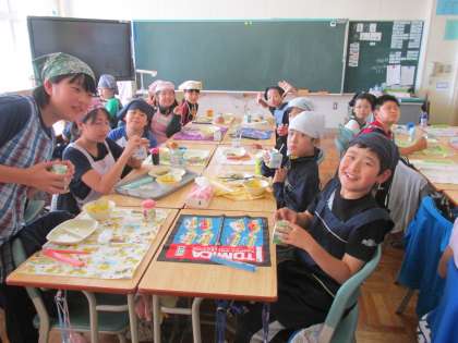 撮影に行くのが遅くなり、食べ終わっていた児童もいました。ご容赦ください。