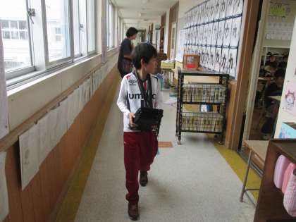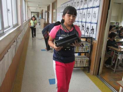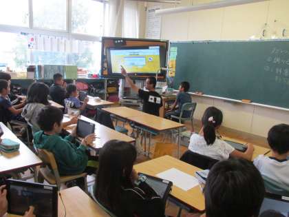4年生総合的な学習の時間の様子です。川の生き物を図鑑やタブレットを使って調べています。