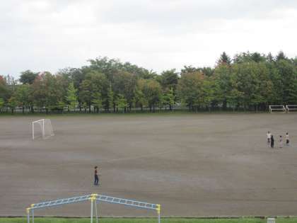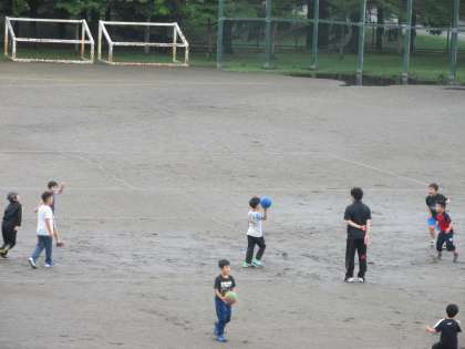 10時過ぎ、中休みにはグラウンドで遊べました。最後の画像は11時頃、雨が上がって4時間後のグラウンドです。本当に水はけのよいグラウンドです。