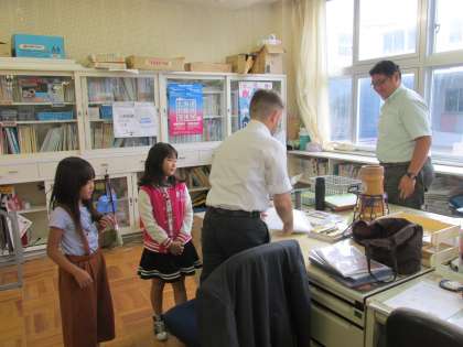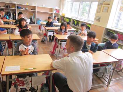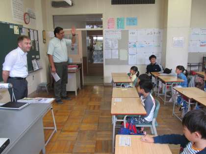 ALTルーカス先生とPIT松本先生が来校し、1年生3クラスの英語学習と6年生2クラスの外国語学習を支援してくださいました。