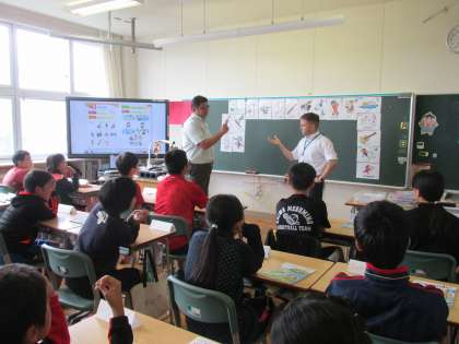 ALTルーカス先生、PIT松本先生は、4・5時間目の6年生の外国語活動も支援してくださいました。ジャンケンゲームもしながら楽しく学びました。6年1組の学習の様子です。