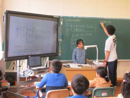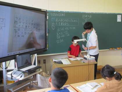 2人で話し合ったあとは、自分の考えをみんなに書画カメラを使って伝えます。