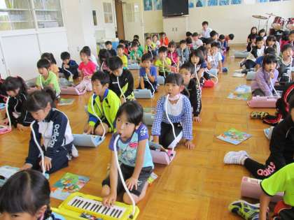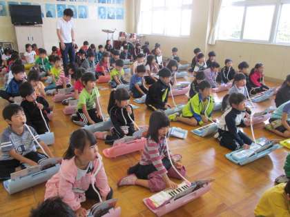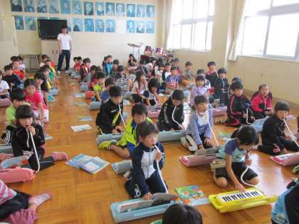 鍵盤ハーモニカも特訓開始です。指揮を見る子ども達の目が素敵です。