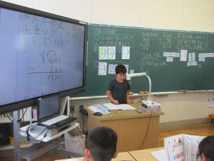 書画カメラでノートを提示しながら発表することが得意な2年2組の子ども達です。川越実習生さんも子ども達同様、とてもがんばり、わかりやすく落ち着いた授業を行ってくれました。あと4日間の実習生活となりますが子ども達とたくさんの思い出をつくって実習を終えることを願っています。あと4日よろしくお願いいたします。
