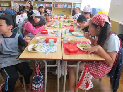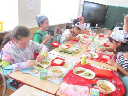 給食も勉強も一緒。あと3日間、楽しんでくださいね。