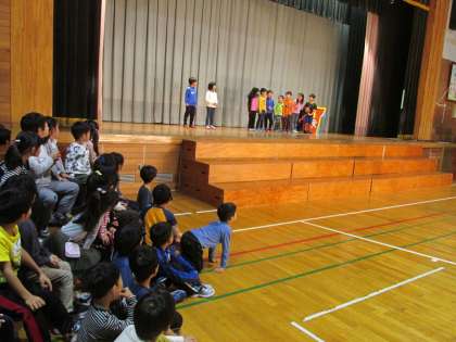 1年生も全員そろっての体育館練習が始まりました。もっともっと大きな声でゆっくりと台詞を言わないと伝わらないことを知りました。