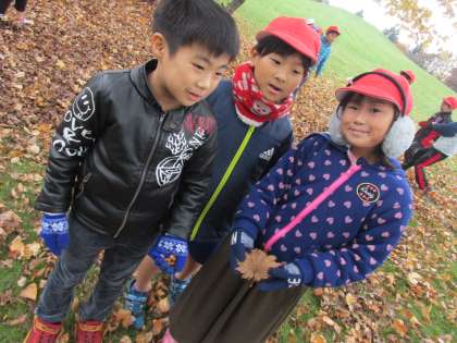 1年生が生活科で秋探しに出かけました。小さい秋大きい秋をたくさん見つけました。