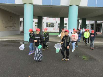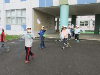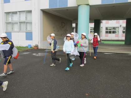 10/18 4年生が理科の学習で秋の虫を探しに出かけました。チョウやトンボ、バッタなどけっこう見つけたようです。