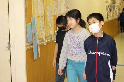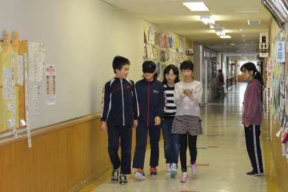 11/13 5年生が総合的な学習の時間に福祉学習の一環でアイマスクして手引き体験をしていました。